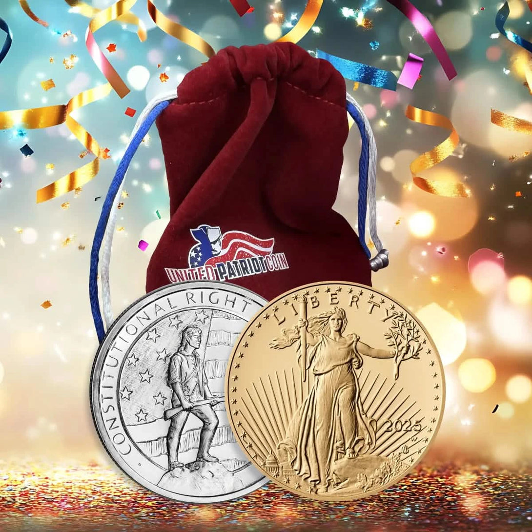 Gold & Silver Patriot Bundle – 1/10 oz American Gold Eagle + 1 oz Second Amendment Silver Round – Free Delivery – Premium Gift Packaging