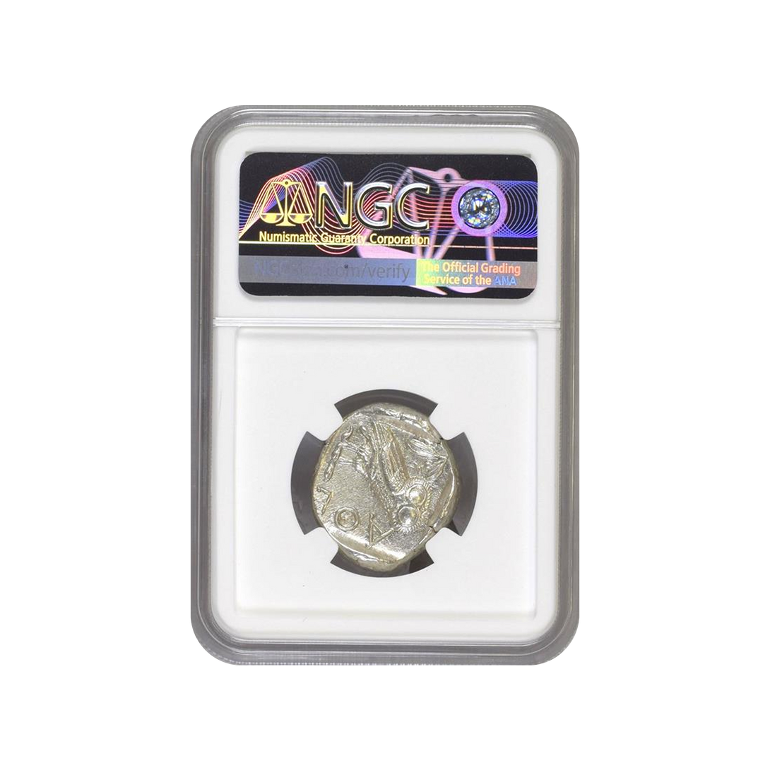 For centuries, Athens was one of the most powerful and respected city-states in the Aegean – the pinnacle of culture in the ancient world. During that golden age, it struck the most famous of all ancient coins: the Athenian Owl Tetradrachm of 449-413 B.C. These hefty silver coins became a recognized standard of value throughout the ancient world. Struck on thick blanks, they feature high-relief designs. On the obverse is Athena, the Greek goddess of wisdom, and on the reverse is her symbol, the owl. These coins are graded by NGC in a Mint State Grade. If you only own one ancient coin, this should be the one!