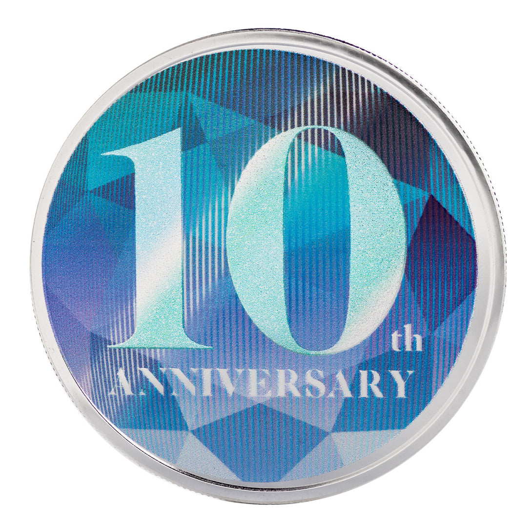 Celebrate a decade of cherished memories and milestones with the 10th Anniversary 1 oz Silver Color Ornament Round. Struck from .999 fine silver, this elegant keepsake is designed to honor 10 years of love, commitment, or achievement—whether it’s a marriage, friendship, or personal accomplishment.
