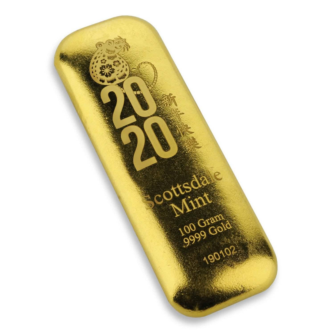 2020 Lunar New Year | Rat 100g Gold Bar – Scottsdale Mint