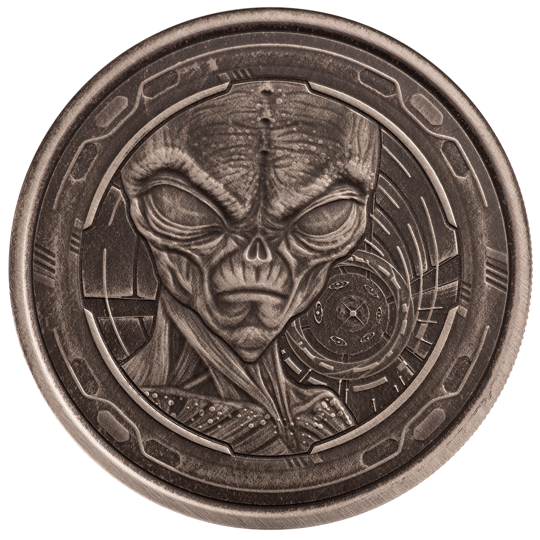 The 2022 release reflects the world’s growing fascination with extraterrestrial life. From government disclosures and mysterious videos to speculation from high-profile figures, curiosity about alien encounters continues to build. This coin captures that intrigue in stunning detail, blending modern storytelling with fine precious metal craftsmanship.