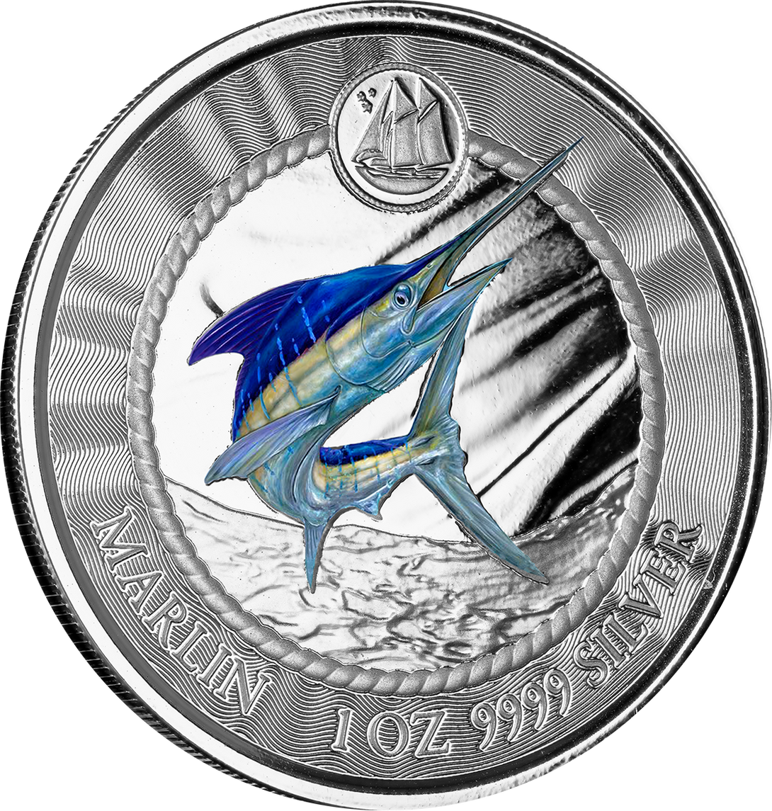 Celebrate the untamed power and beauty of the open ocean with the 2023 Cayman Islands Marlin Coin, struck in 1 troy ounce of .9999 fine silver and enhanced with vibrant colorization. Part of the Cayman Islands’ marine heritage series, this limited-edition release captures the legendary Blue Marlin (Makaira nigricans) in stunning detail.