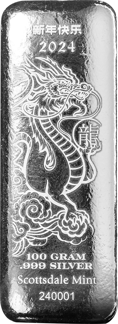 2024 Lunar Year of the Dragon 100 Gram Silver Bar