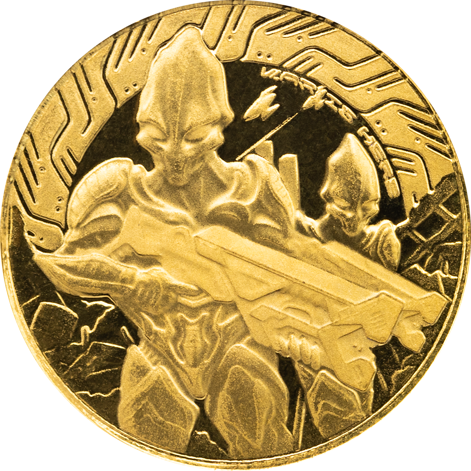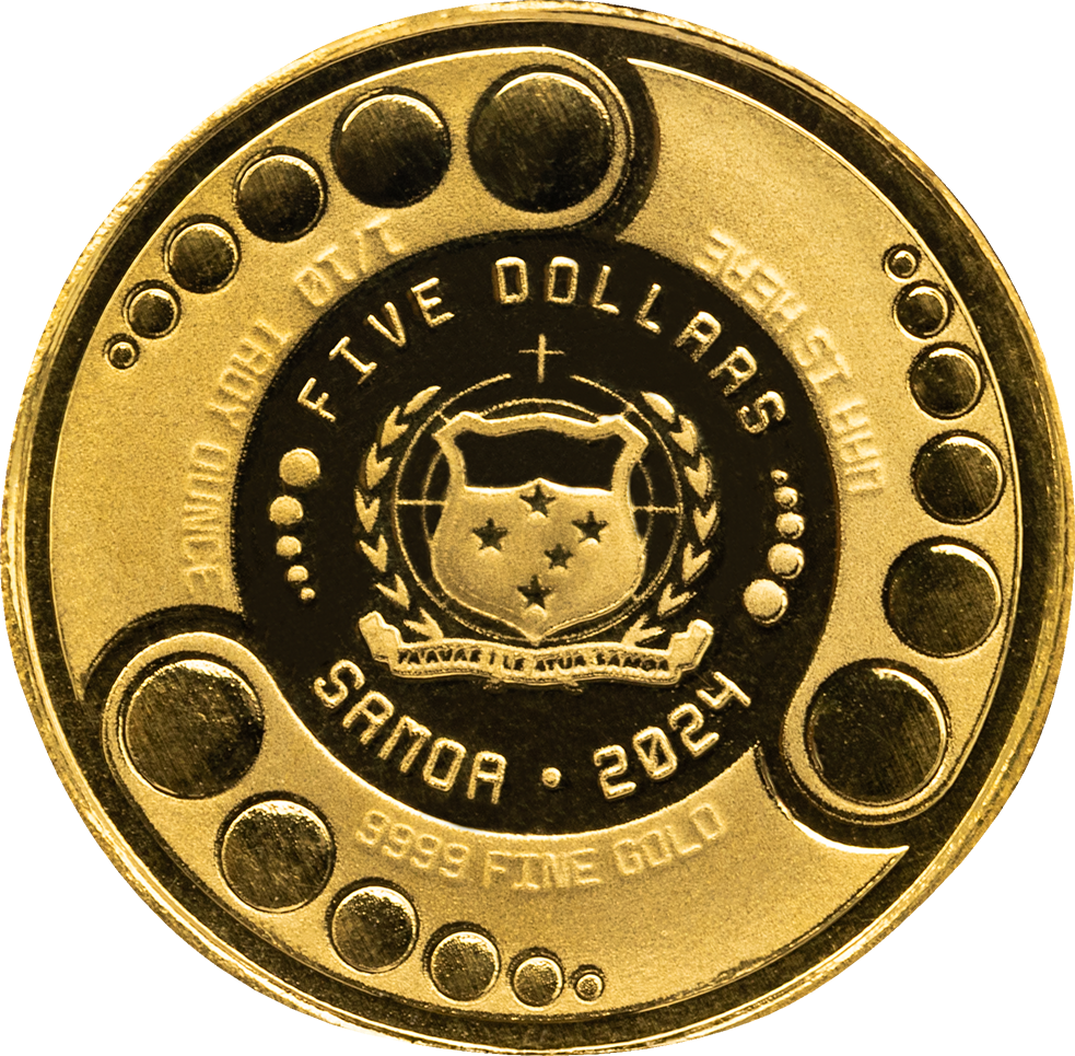 The 2024 Samoa Alien Series is now available in a compact and highly collectible 1/10th troy ounce .9999 fine gold edition. Featuring the same dramatic design of two armored alien warriors — one wielding a futuristic charge gun while the other stands ready for combat — this smaller format delivers all the artistry and intrigue of the series in an accessible size.