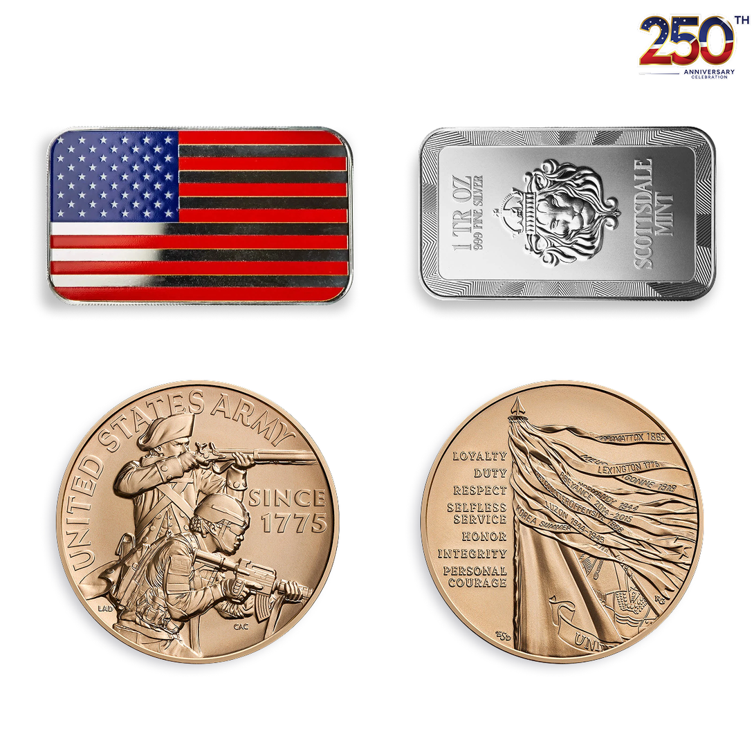 250th Anniversary Colorized Silver Flag and U.S. Army Medal Pack