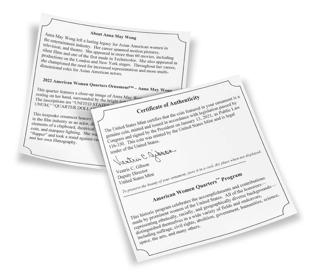 2022 United States Mint American Women Quarters Ornament – Anna May Wong