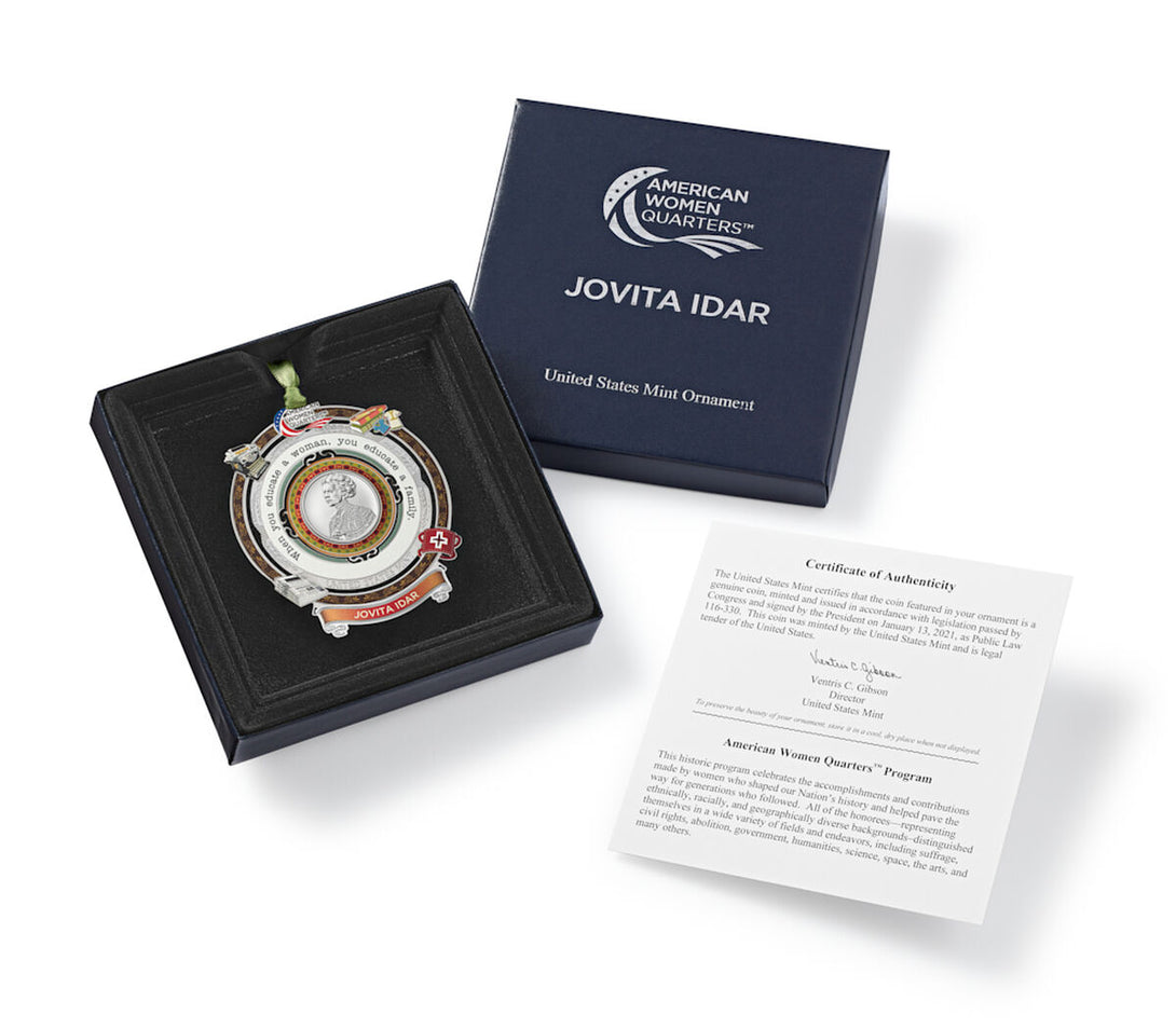 Celebrate the life and legacy of Jovita Idar, a trailblazing Mexican-American journalist, activist, educator, and humanitarian, with the American Women Quarters 2023 Ornament – Jovita Idar.