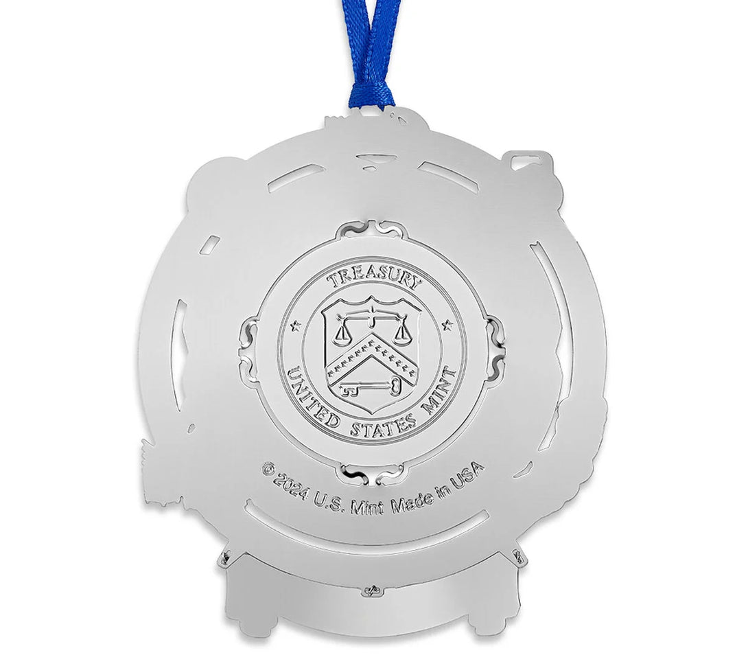 Exquisitely handcrafted in solid brass with a rhodium finish, this collectible ornament showcases the reverse (tails) of the 2024 Celia Cruz quarter in uncirculated finish, minted at the Philadelphia Mint.