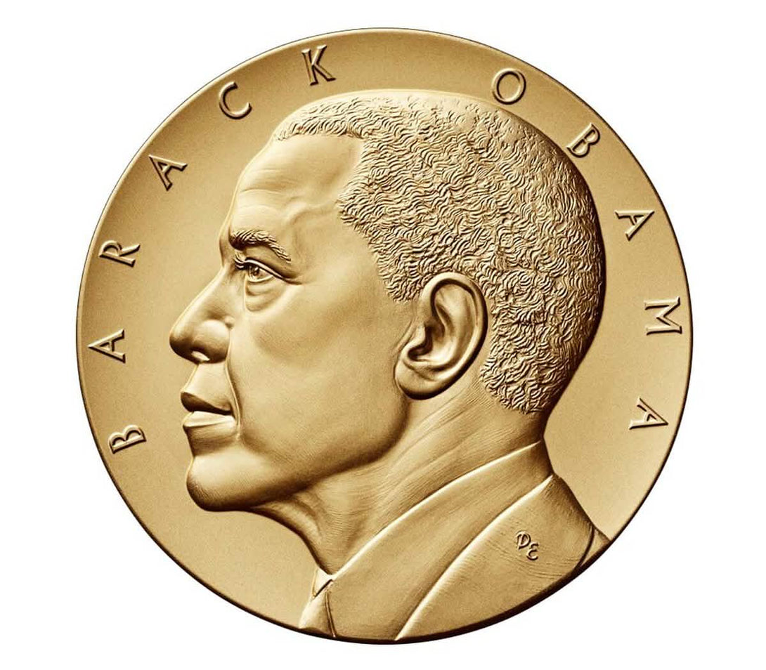 Features a distinguished side profile of President Obama, with his name, “Barack Obama,” inscribed along the edge.