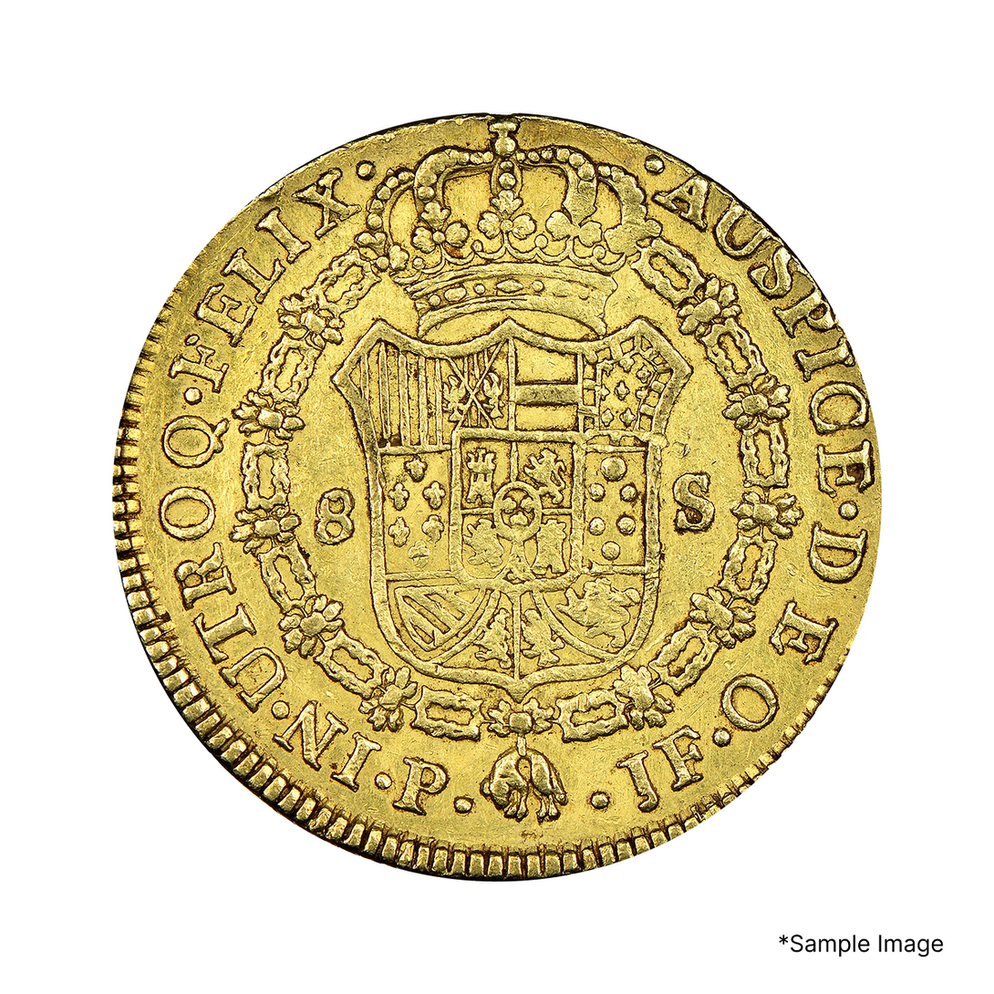 8 Escudos Gold Coin – Colombia 1780 – NGC MS62 Condition