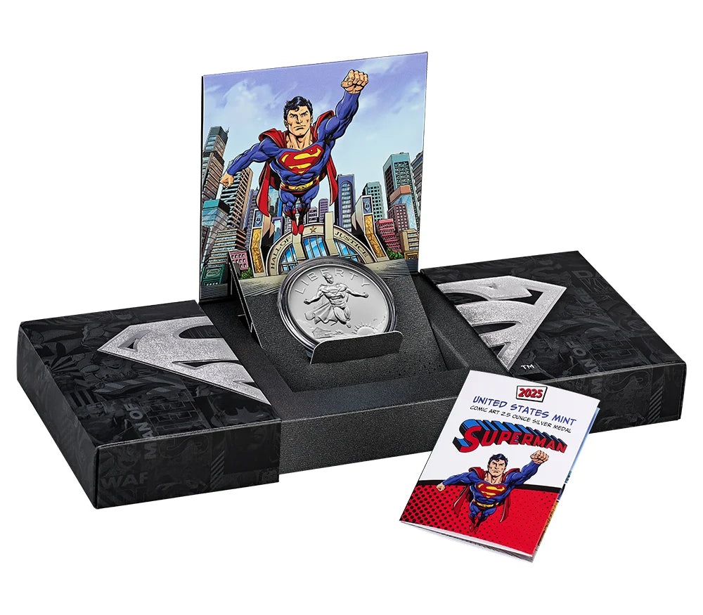 The U.S. Mint proudly presents the 2025 Superman™ 1 oz Silver Medal, the next heroic release in the Comic Art Coin and Medal Program, celebrating comic art as a uniquely American art form.