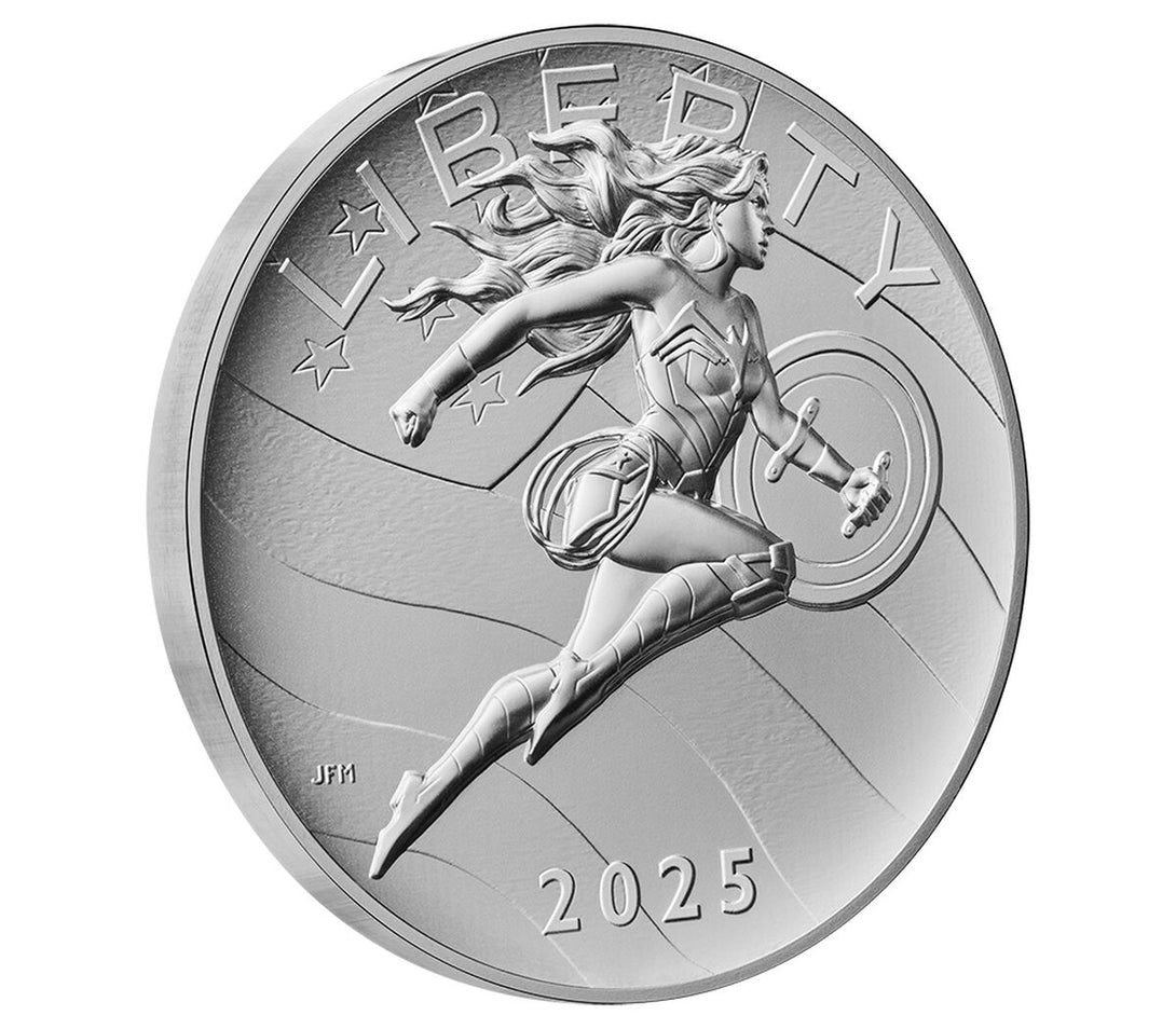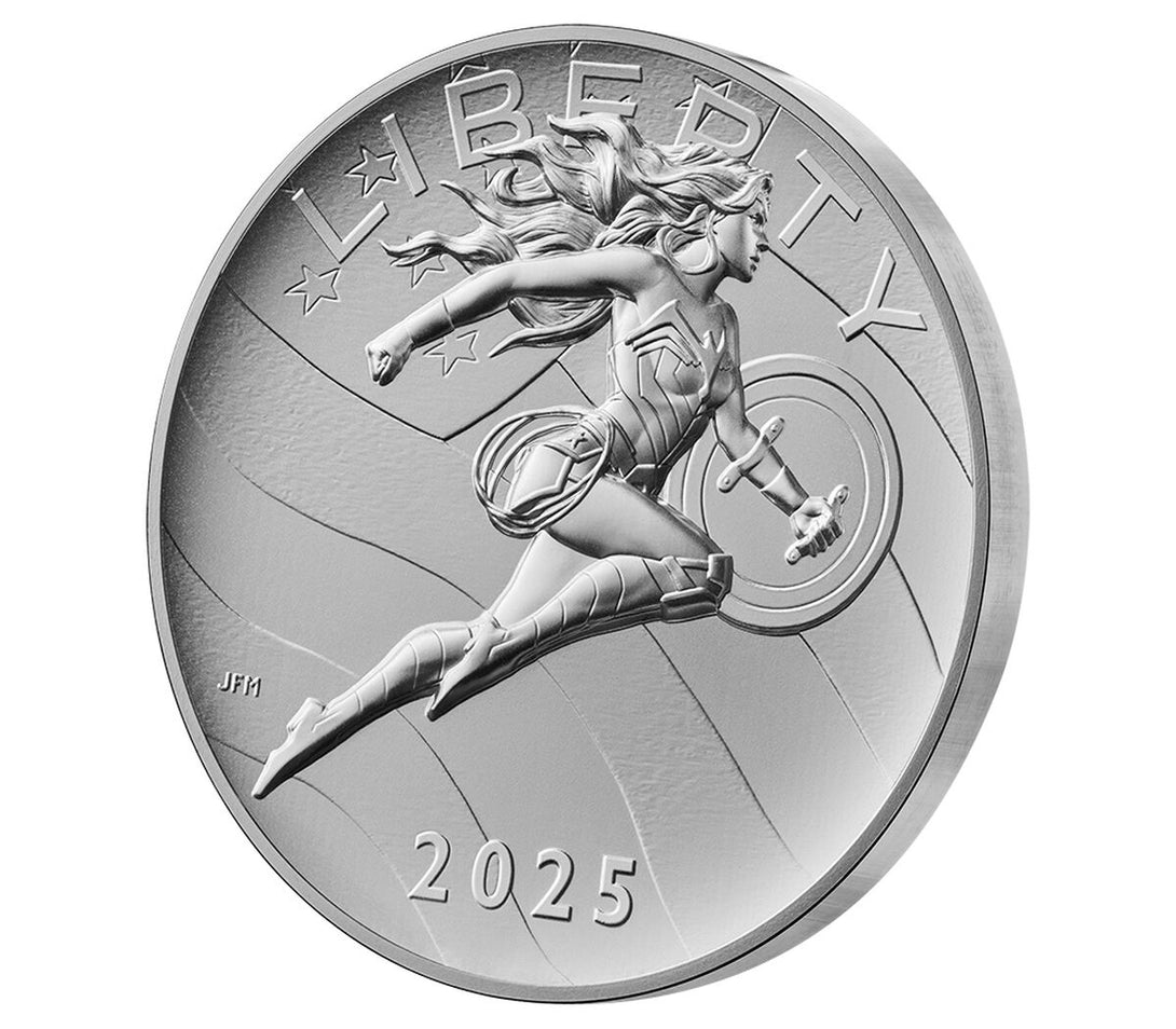 This Comic Art 2.5 oz Silver Medal – Wonder Woman™ unites artistry and heroism in fine silver — a perfect collectible for DC fans, modern art enthusiasts, and silver investors alike.