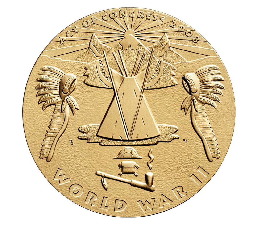 Obverse (Heads): Features a variation of the Army Air Corps wings, inscribed “CROW CODE TALKERS.”