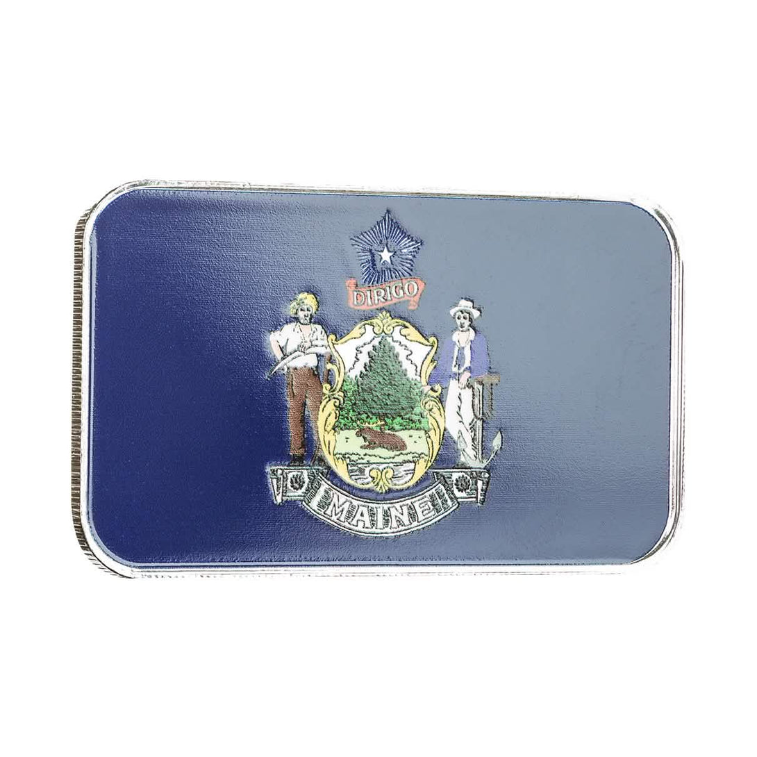 Maine State Flag 1 oz Silver Color Bar