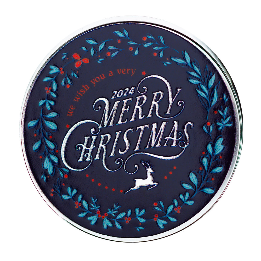 Celebrate the season of joy and togetherness with the Merry Christmas 1 oz Silver Color Round. Featuring the heartfelt greeting “Merry Christmas” against a rich navy blue background, this elegant design is framed by a delicate wreath accented with festive details, creating a look that is both classic and sophisticated.
