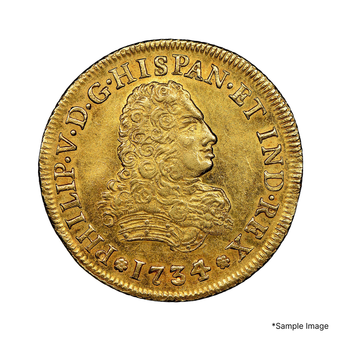 Struck in 1734, this Mexico City 4 Escudos represents early Bourbon-era gold production in the New World. These half-doubloon pieces circulated among merchants and officers who required substantial, portable wealth.