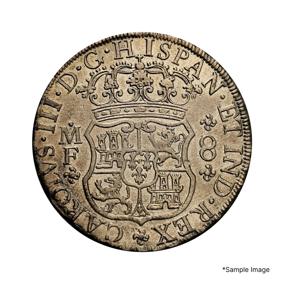 Few coins reflect the heartbeat of colonial commerce like the Mexican 8 Reales. Struck in 1768 at the Mexico City Mint—epicenter of the Spanish Empire’s silver wealth—this large “piece of eight” circulated across Europe, Asia, and the Americas as the world’s first global trade currency.