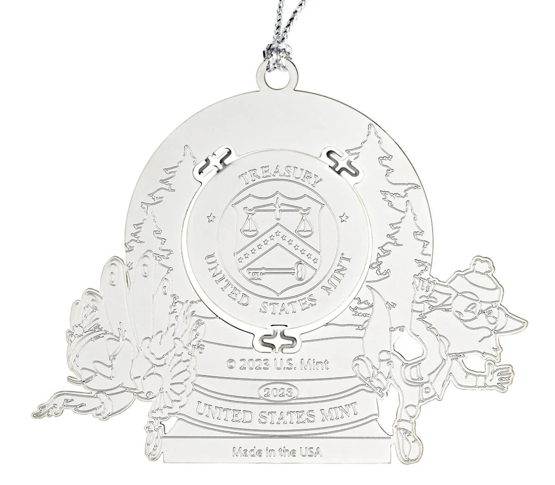 The engraved United States Mint seal adorns the back of the ornament, ensuring authenticity and collectible value.