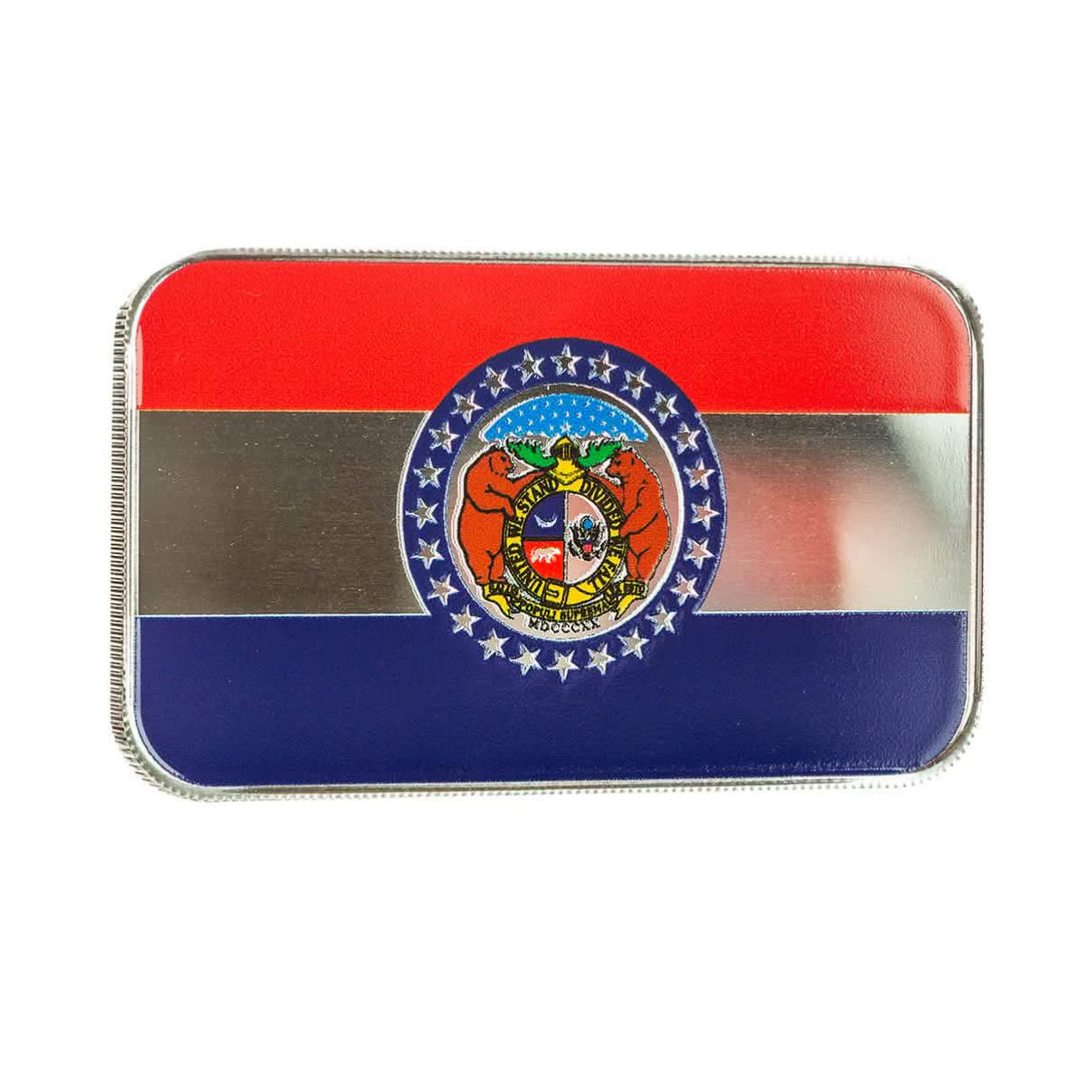 Add the Missouri State Flag Silver Bar to your collection and celebrate the strength, history, and values of the Show-Me State!