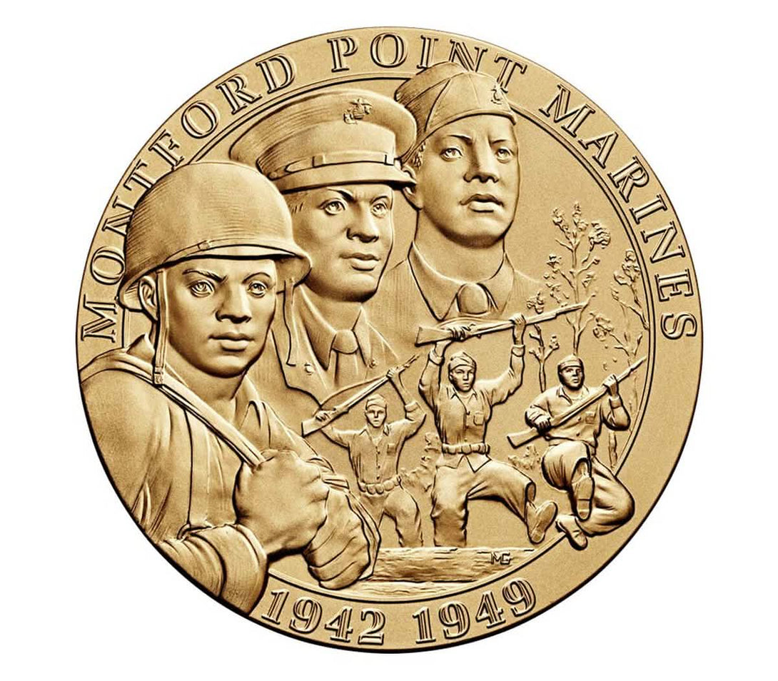 Presented collectively in a ceremony at the U.S. Capitol on June 27, 2012, this medal recognizes the contributions of over 19,000 Black Americans who served in the Marine Corps during World War II—many under segregated conditions. These Marines trained at Camp Montford Point in North Carolina between 1942 and 1949, following President Franklin D. Roosevelt’s 1941 executive order promoting fair employment practices in the military.