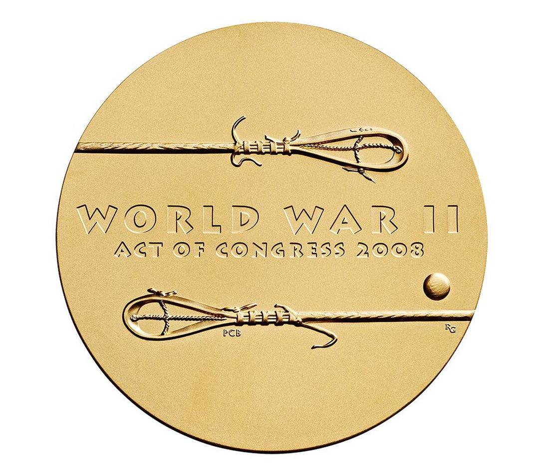 Reverse (Tails): Depicts lacrosse sticks and a ball, honoring a sport that evolved from Native American games used for training, recreation, religious reasons, and settling disputes. Inscriptions: “WORLD WAR II” and “ACT OF CONGRESS 2008.”