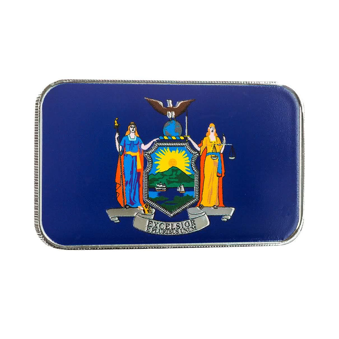 Add the New York State Flag Silver Bar to your collection and celebrate the liberty, justice, and upward spirit of the Empire State.