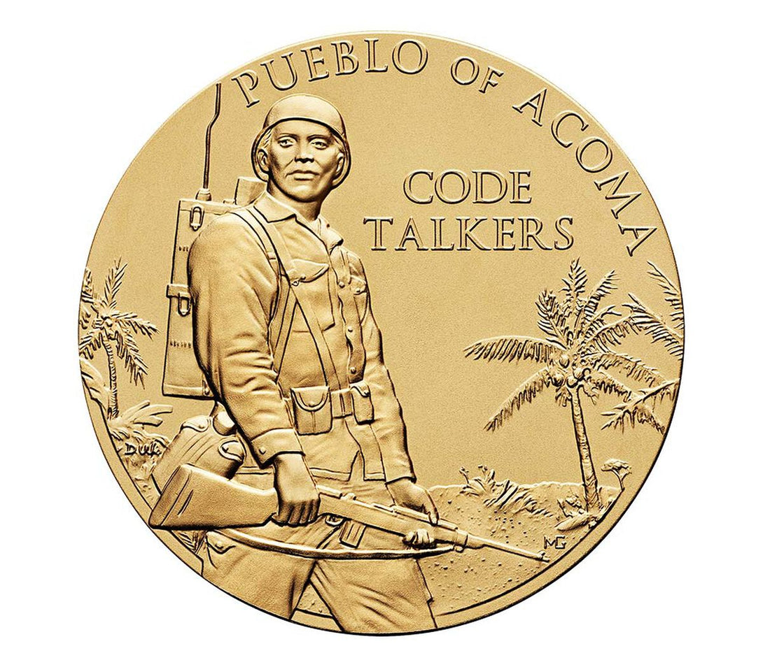 Celebrate the heroism of the Pueblo of Acoma Tribe Code Talkers with this 1.5-inch bronze medal, a smaller duplicate of the Congressional Gold Medal awarded at the U.S. Capitol Building on November 20, 2013. This medal commemorates their bravery and dedication during World War II.