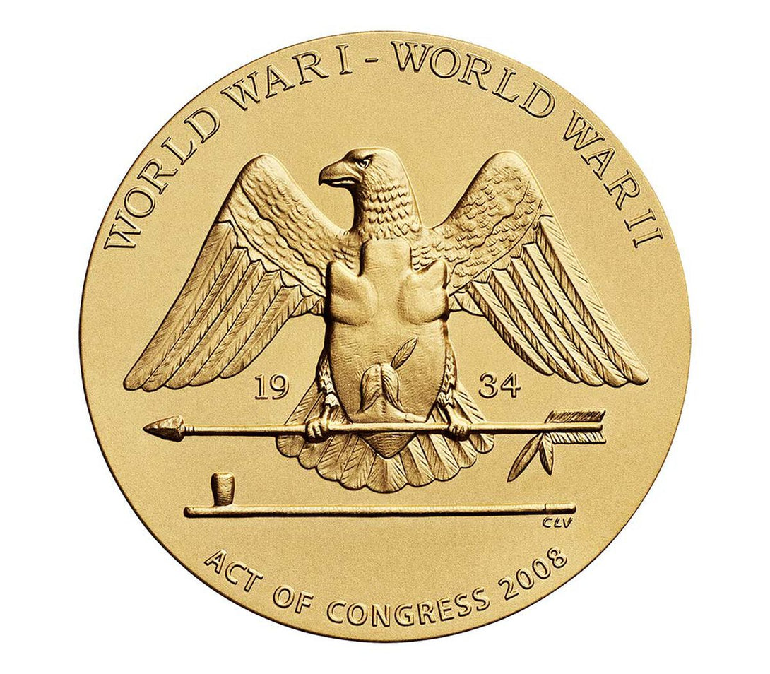 Celebrate the bravery and service of the Santee Sioux Tribe Code Talkers with this 1.5-inch bronze medal, a smaller replica of the Congressional Gold Medal awarded at the U.S. Capitol Building on November 20, 2013. This medal honors the Code Talkers’ dedication and valor during World War I and World War II.