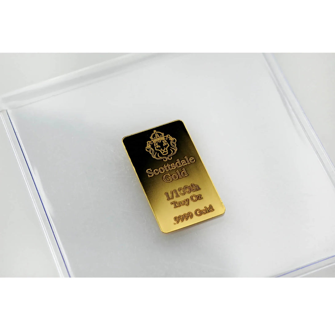 Often referred to as “Prepper Gold,” this ultra-fractional bar is designed for those who value accessibility, portability, and flexibility in their gold holdings. Each bar features the iconic Scottsdale lion hallmark, along with clearly stamped weight and purity, ensuring trust and authenticity in every gram.