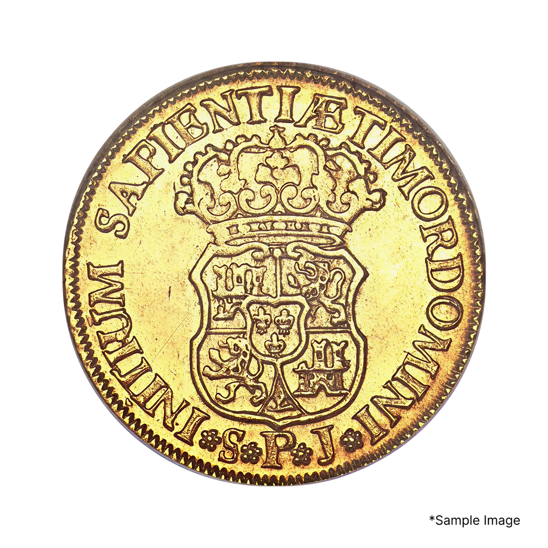 Minted in Spain in 1734, this 2 Escudos is a striking example of Old World gold that circulated alongside its New World counterparts. These smaller gold denominations were widely used in European commerce and often traveled aboard ships to the Americas.