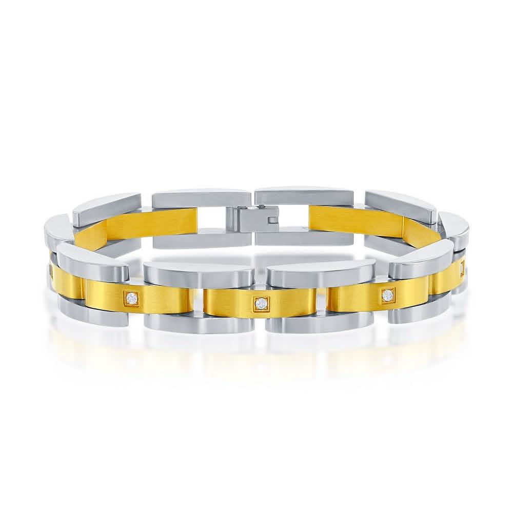 Stainless Steel Gold & Silver Link CZ Bracelet