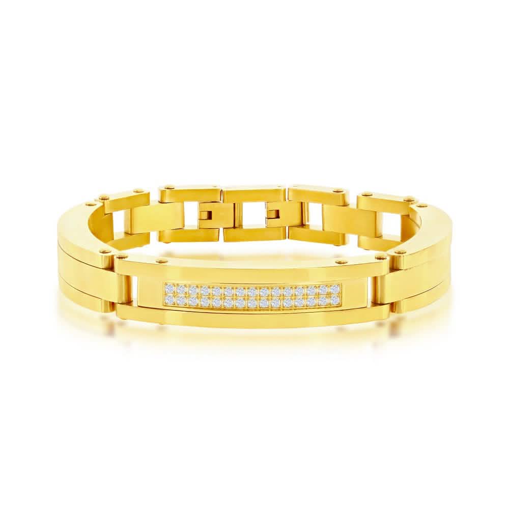 Stainless Steel Micro Pave CZ ID Link Bracelet – Gold Plated