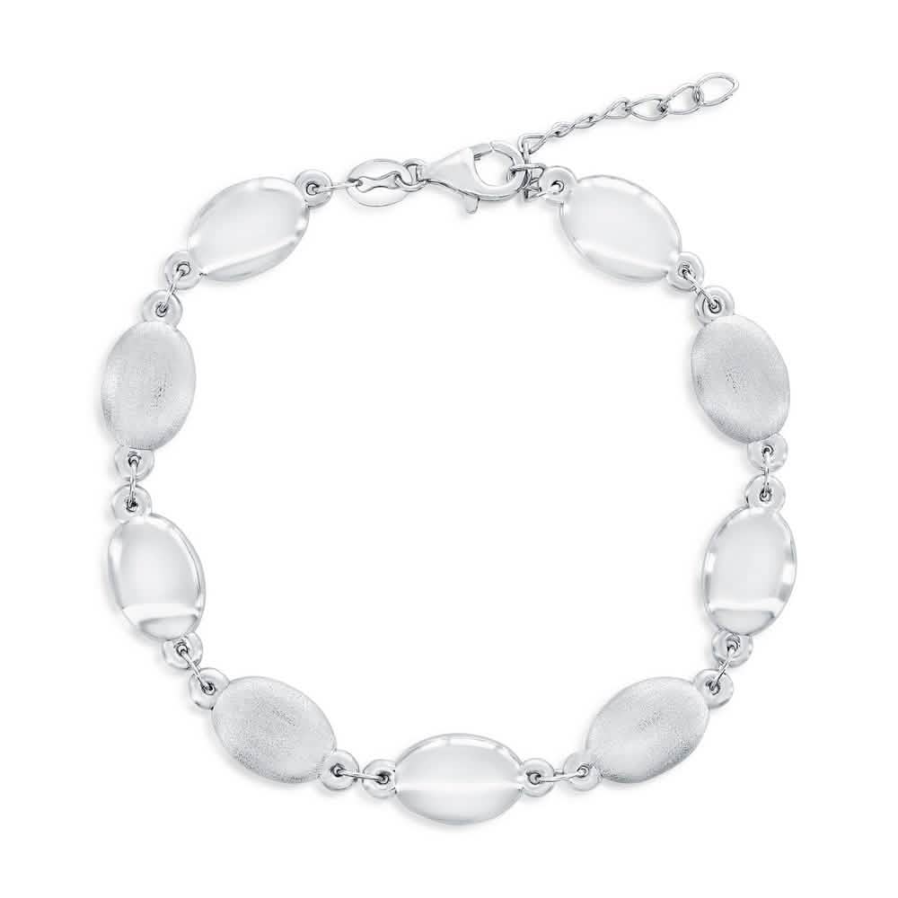Sterling Silver, Alternating Brushed & Polished Oval Bracelet