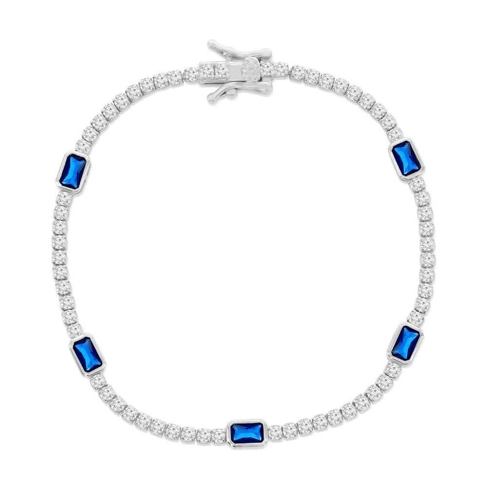 Sterling Silver Rectangle Bezel-Set & Round CZ Bracelet – Sapphire Blue