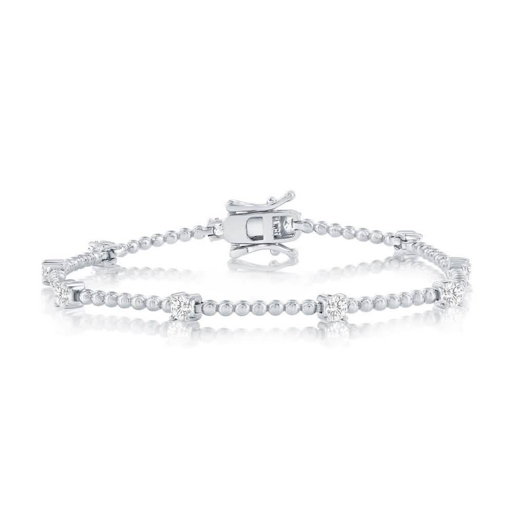 Round CZ & Beaded Bracelet | .925 Sterling Silver