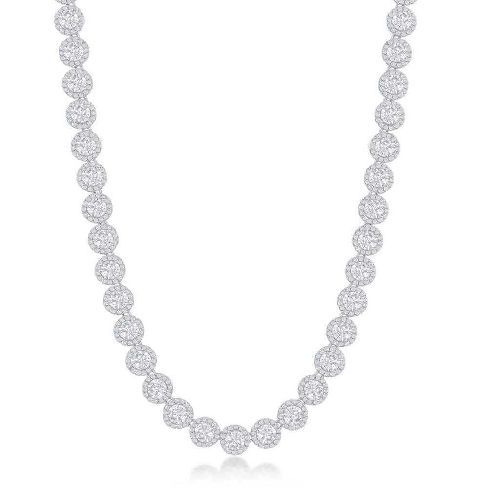 Sterling Silver Round Halo Cubic Zirconia Tennis Necklace