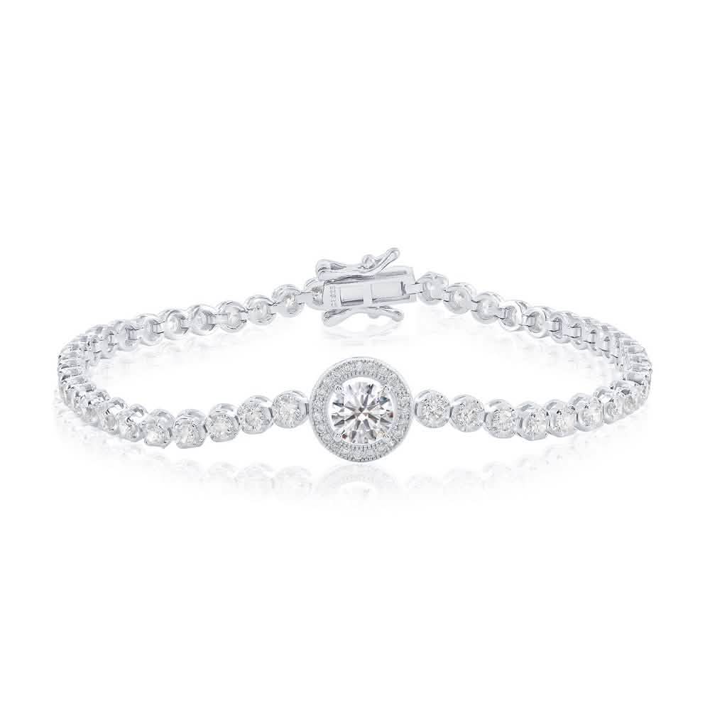 Round Halo CZ Tennis Bracelet | .925 Sterling Silver