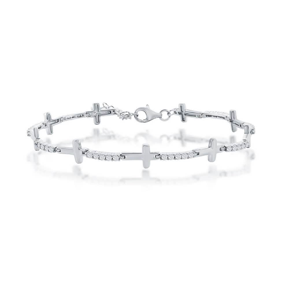 Sterling Silver, Sideways Cross & CZ Bracelet
