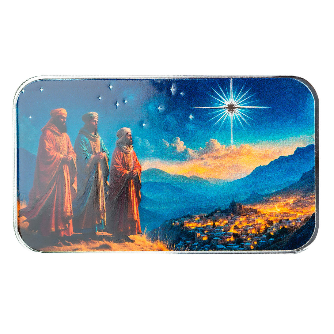 Honor the journey of the Magi with this exquisite silver bar—a radiant celebration of faith, guidance, and the spirit of Christmas.