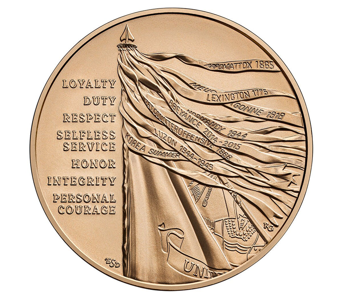 This bronze medal honors the proud heritage and service of the United States Army, recognizing the bravery and sacrifice of soldiers who have defended our Nation for nearly 250 years.