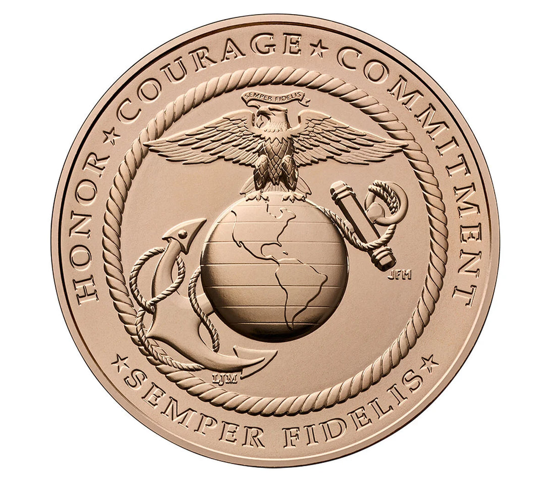 This bronze medal pays tribute to the proud legacy and valor of the United States Marine Corps, honoring the courage and commitment of Marines past and present.