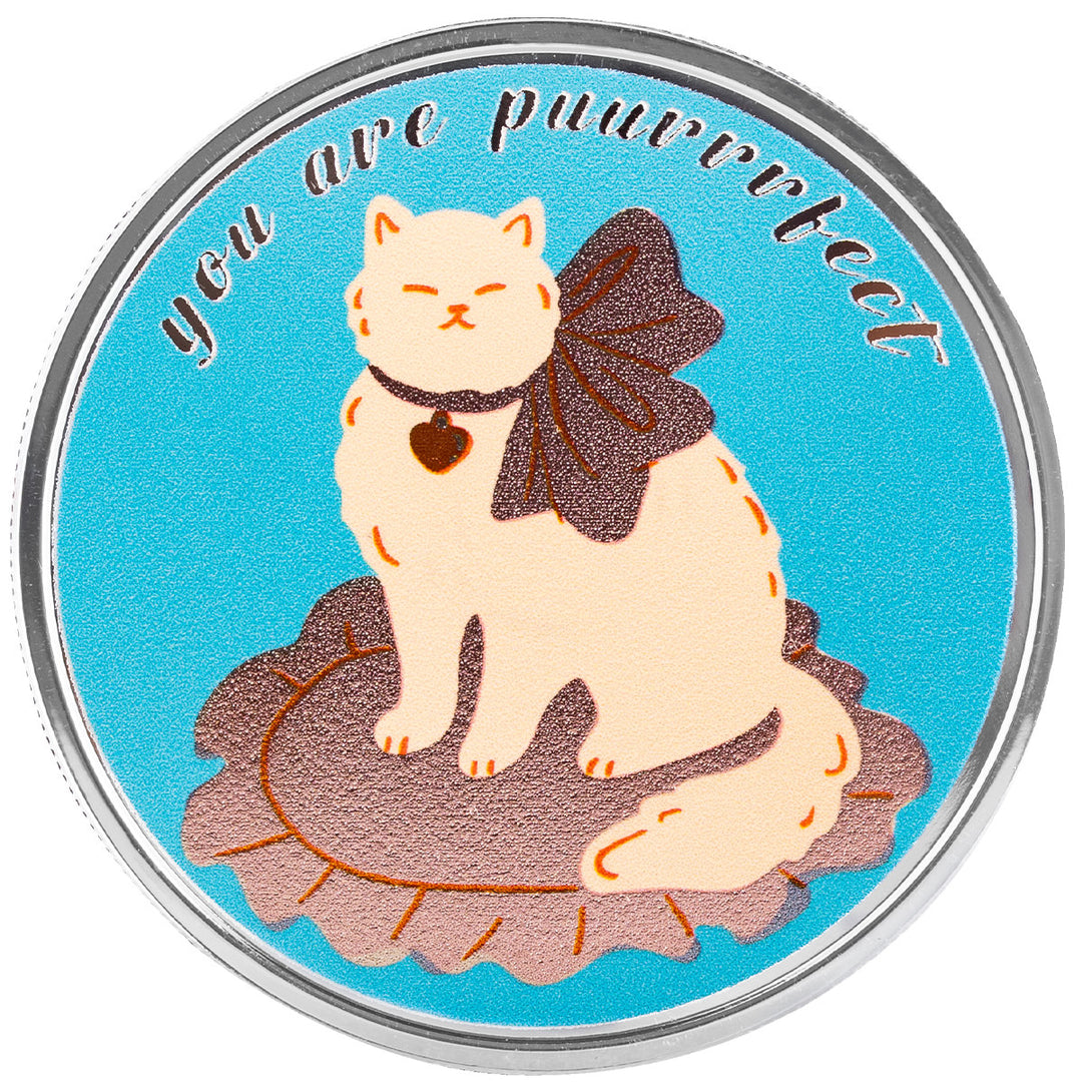 Show someone special how much you care with the You Are Puurrrfect 1 oz Silver Color Round from the Valentine’s Day Collection. This adorable design features a white cat gracefully perched on a blush pink pillow, complete with a matching pink bow, radiating charm and elegance. Set against a soft baby blue background, the round perfectly balances playful sweetness with gentle sophistication. The phrase “You Are Puurrrfect” adds a whimsical, affectionate touch, making it a delightful keepsake.