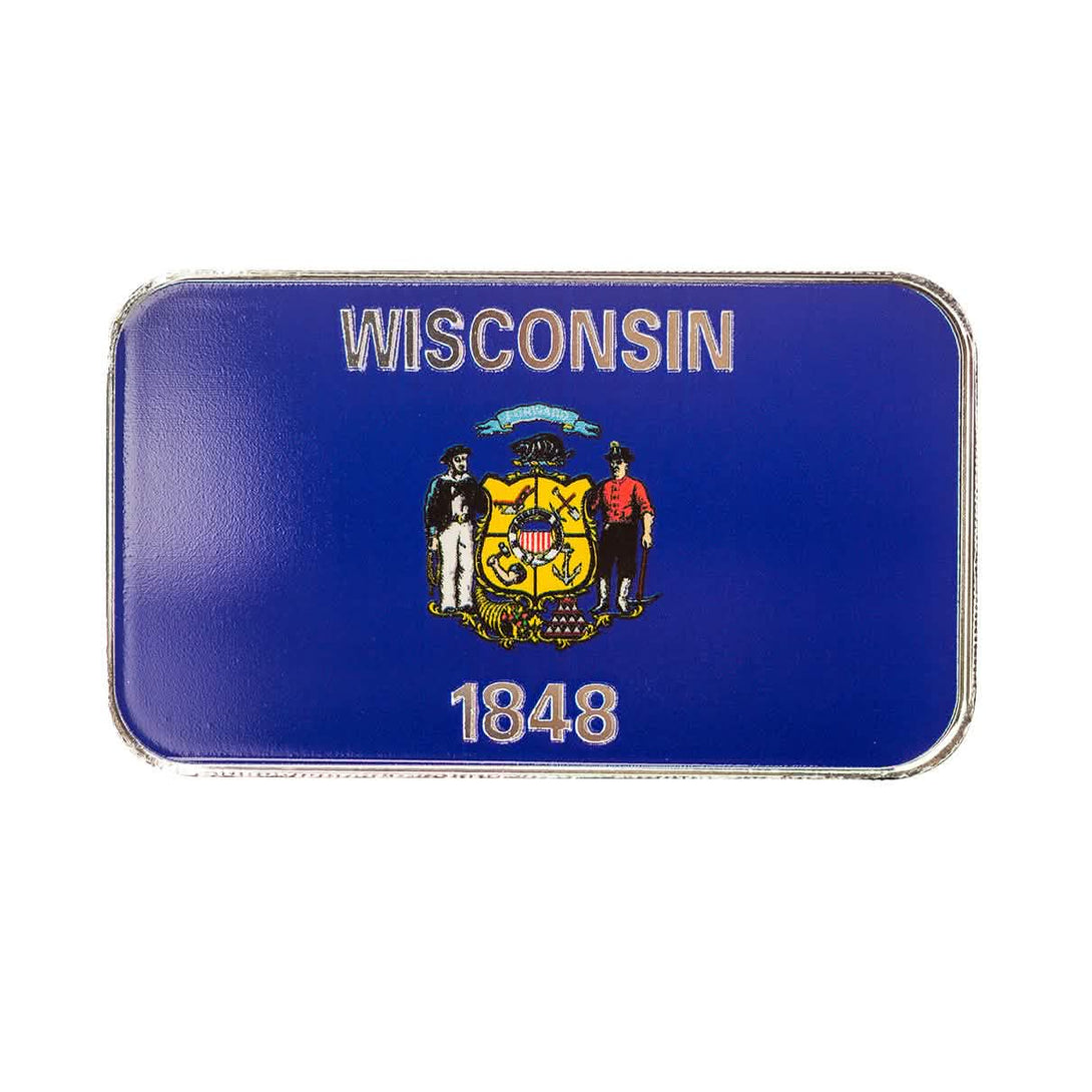 Celebrate the Badger State with this finely crafted 1 oz Silver Color Bar featuring the official State Flag of Wisconsin. With its detailed design and meaningful symbolism, the flag reflects Wisconsin’s history, values, and proud heritage.